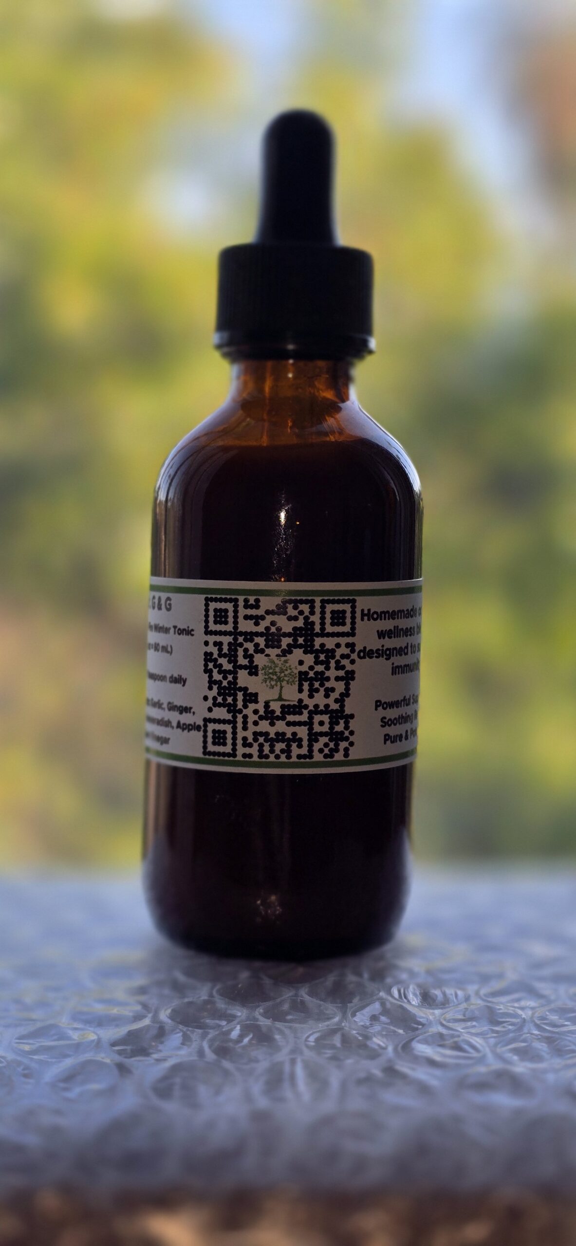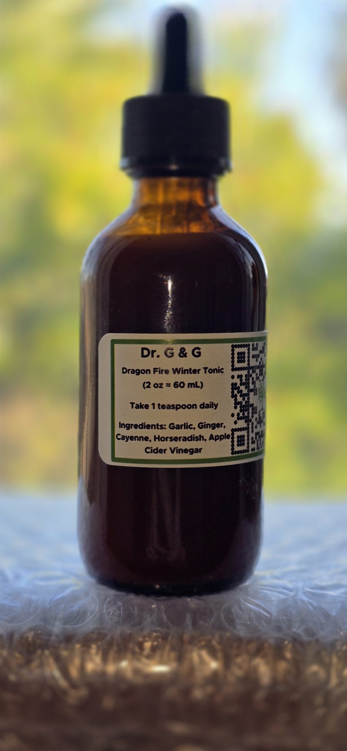 Our homemade Dragon Fire Winter Tonic is a powerful blend designed to support your overall wellness. It helps prevent and treat common seasonal discomforts while providing soothing relief for sore throats.
